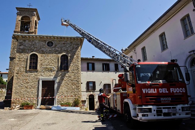 | I pompieri periziano la chiesa lesionata dove si sarebbe dovuta svolgere la cerimonia |